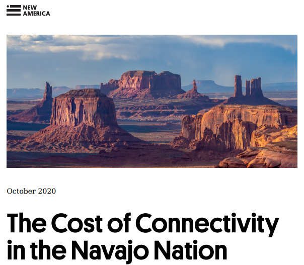 Exploring the economic, educational, and wellness costs of this lack of affordable, fast Internet access to the Navajo Nation are beyond the scope of the report, but they are no doubt more strongly manifested examples of familiar trends: fewer economic opportunities, students who will continue to fall further behind, a continued absence of crucial social connections, poorer health and mental health outcomes, and in general host of other struggles which will persist for a long time..