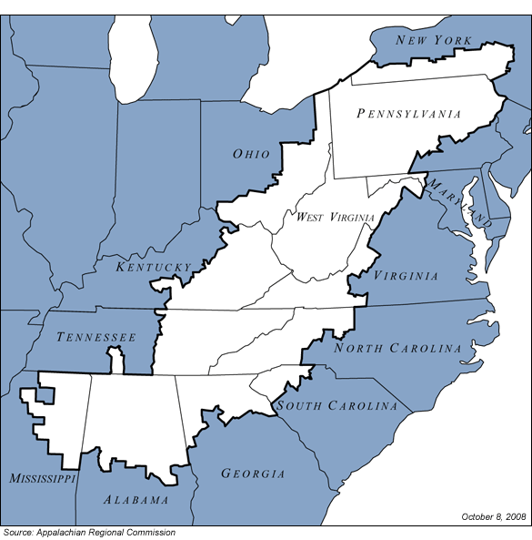Public domain image of Appalachia map from Appalachian Regional Commission.